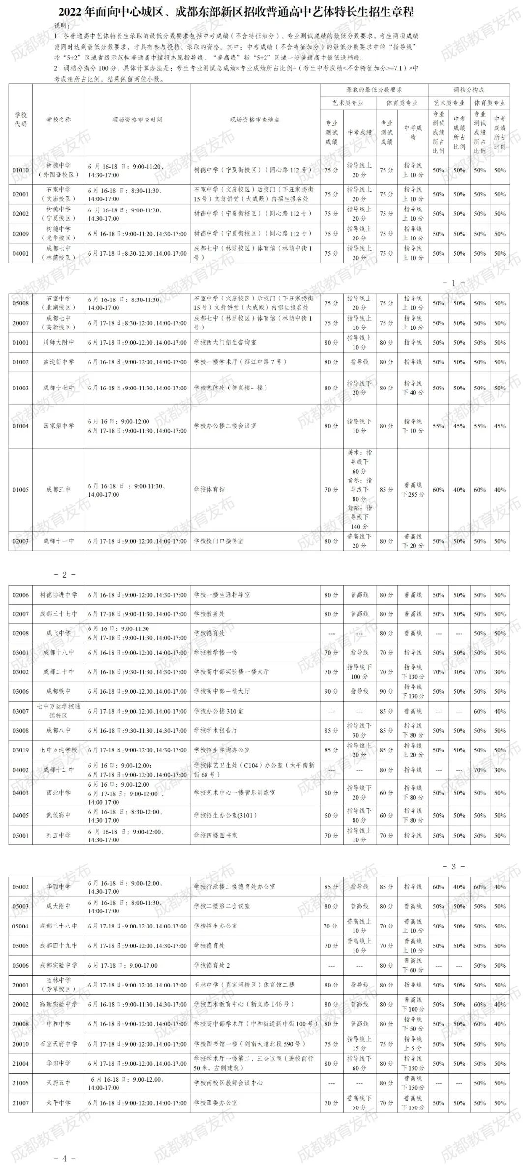 2022年面向中心城区、成都东部新区,招收普通高中艺体特长生招生章程