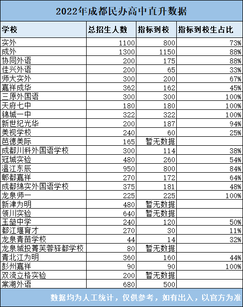 下图是目前成都初升高可以直升的民办高中汇总,仅给家长们参考。