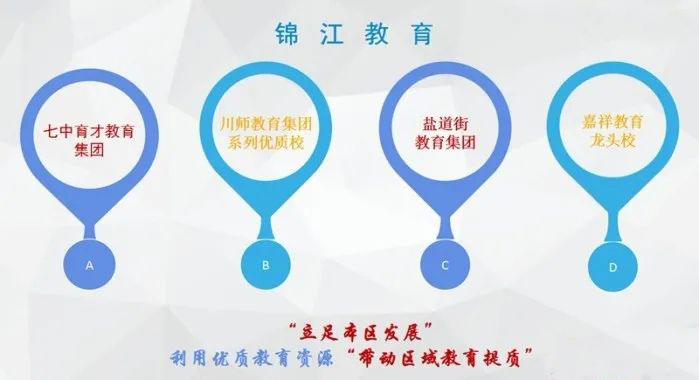 图中仅是川师教育集团在锦江区的布局。其中,除川师附中(锦华分校)是 2022 年启动新校,其他几所都是非常成熟的老校,都有优秀的教学成绩。