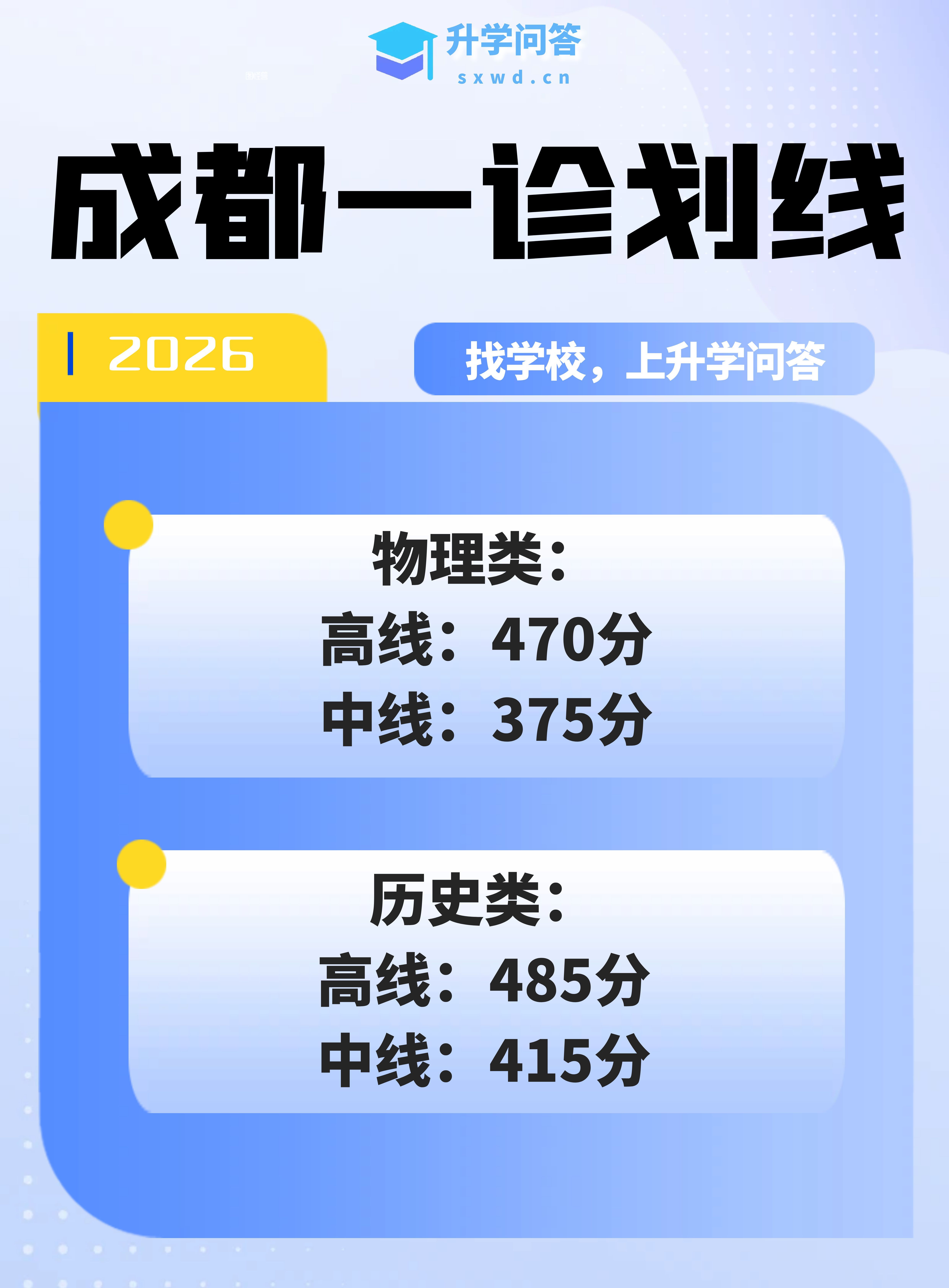 刚刚,2026届成都高三一诊分数线新鲜出炉!此次划定了两个关键参考线,高线对应老一本线、特控线,中线对应本科线。具体分数线为:物理类高线470分、中线375分;历史类高线485分、中线415分。以上是各科有效分,快来看看你上线了没?