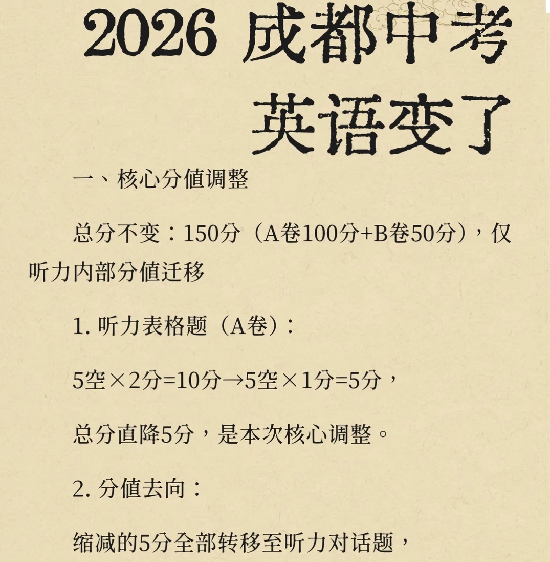 2026年成都中考英语有调整